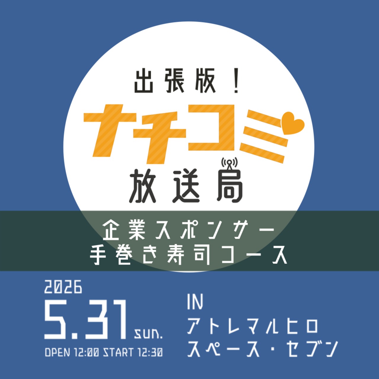2026年5月31日(日)に、川越『アトレマルヒロ スペース・セブン』にて、ラジオ川越 協力の 番組トークイベント 「出張版!ナチコミ放送局」 を開催いたします。